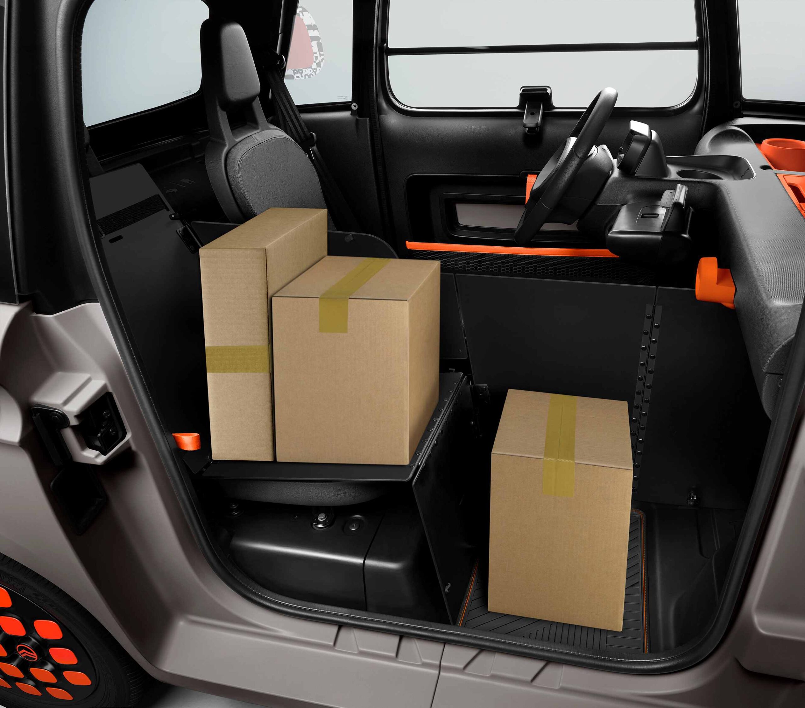 Gut 200 Kilogramm Zuladung für Fahrer und Fracht, vor Ort abgasfrei und rechterhand eine Ablage für kleinere Ladungen oder größere Werkzeugkoffer und Material. Der Citroen Ami Cargo fährt in seiner eigenen Welt.