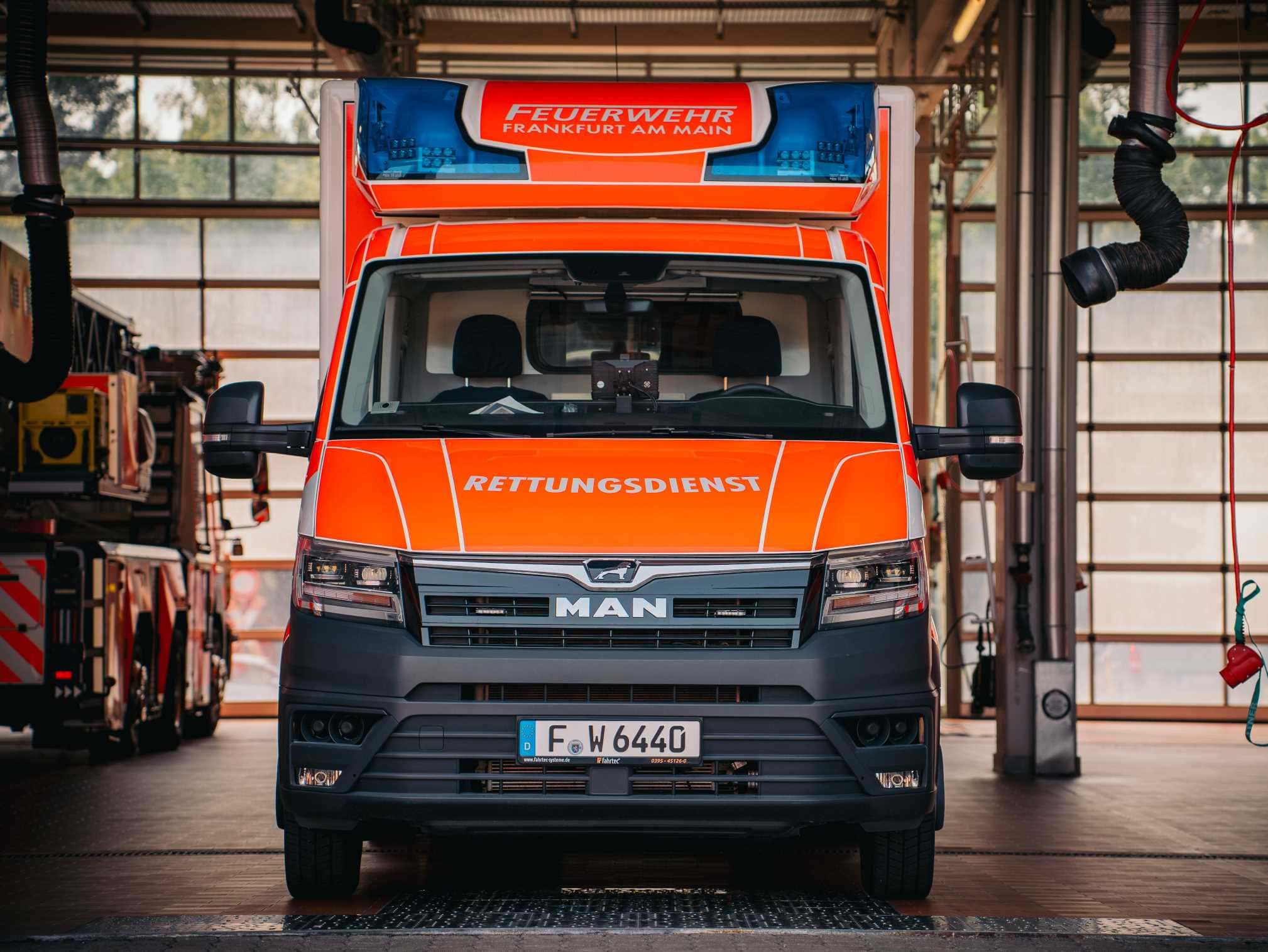 Das zeigen zum Beispiel 21 neue Rettungswagen für die Feuerwehr Frankfurt. Basis ist der MAN TGE als Fahrgestell mit Fahrerhaus in der Ausführung mit 5,5 Tonnen zulässiger Gesamtmasse, 120 kW (163 PS) Leistung und Automatikgetriebe. Dank einheitlicher Ausstattung finden sich Rettungssanitäter auf Anhieb in jedem der MAN TGE zurecht. Die Aufbauten stammen von Fahrtec, wie bereits bei einer früheren Serie.