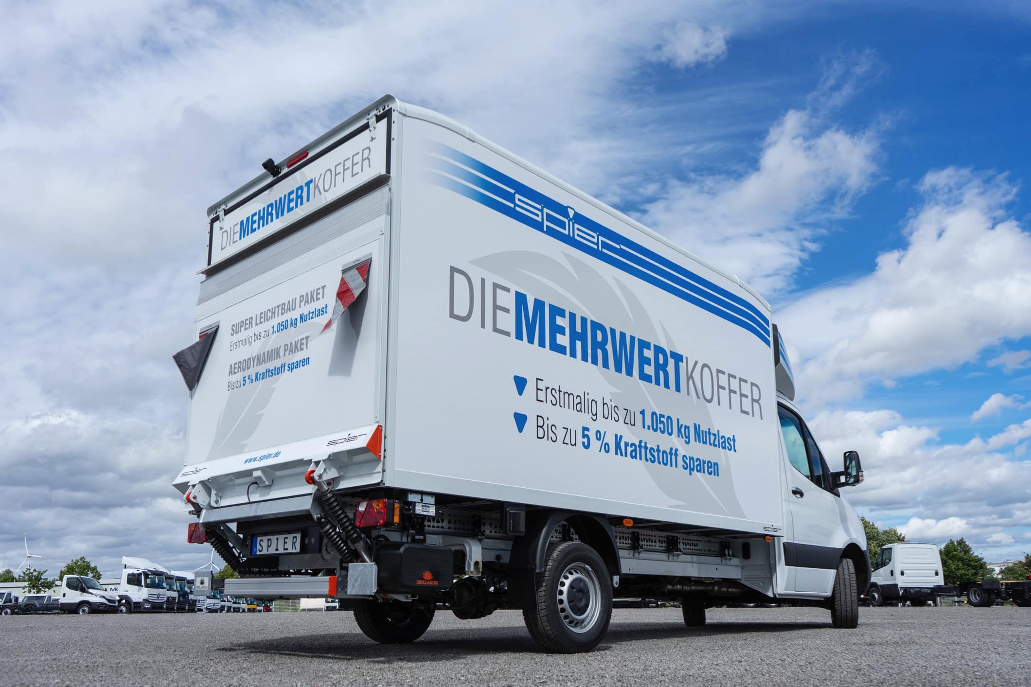 Spier setzt bei seinen Kofferaufbauten auf superleichte Materialien und durchdachte Konstruktion. Das reduzierte Eigengewicht ermöglicht höhere Nutzlasten und geringeren Energieverbrauch. Gleichzeitig sorgt eine verbesserte Aerodynamik für weniger Luftwiderstand – ein entscheidender Vorteil sowohl für konventionelle als auch für elektrische Transporter.